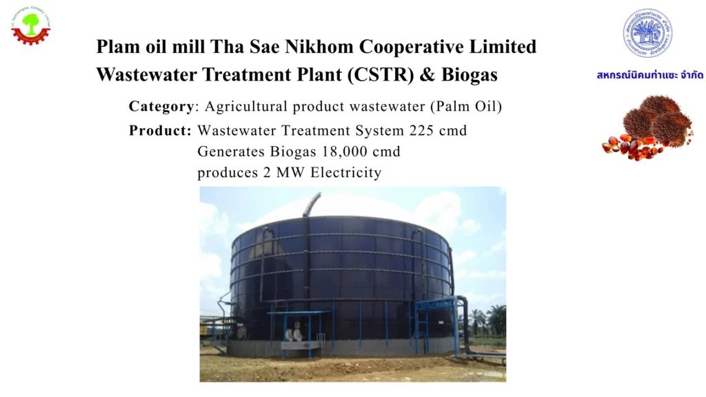 Biogas – Plam oil mill Tha Sae Nikhom Cooperative Linited Biogas / By admin Biogas – Plam oil mill Tha Sae Nikhom Cooperative Linited Read More »